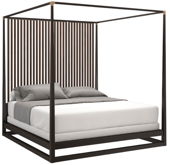 Cascading lines lend a bold backdrop to this updated take on the classic canopy bed. Architecturally-inspired design features rich walnut vertical slats, warmly contrasted by a dark chocolate canopy and posts accented with champagne gold brackets.Read More