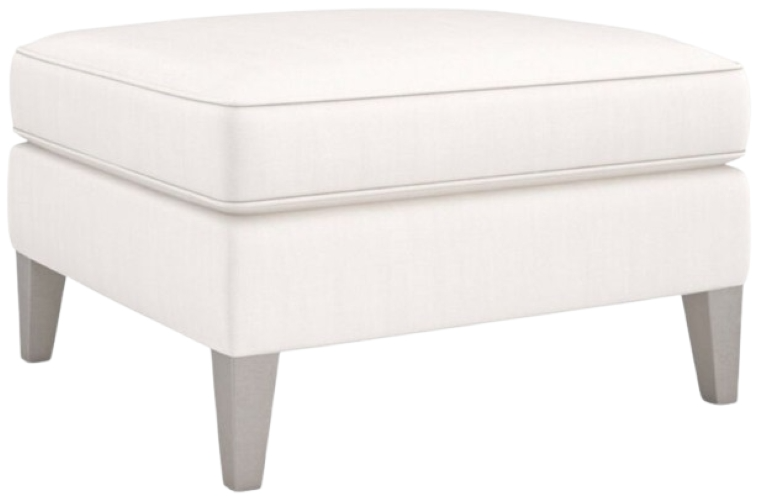 Simple, yet refined in a cream performance basketweave, this shapely ottoman is designed to pair with our Victoria chair, or extend the comfort of our Victoria sectional. Features a plush top cushion, outlined in welt and beautifully balanced on tapered legs in a Sparkling Argent finish.Read More