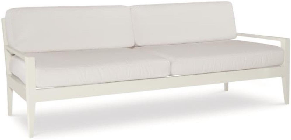 The Allison Paladino Outdoor Sail sofa are materialized in a white powder coated aluminum and the upholstery features bullnose cushions with a plusher sit. The sofa features a two over two cushion design giving it a classic feel and comfort for lounging.Read More