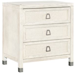 The Atlas three drawer nightstand matches the same beautiful details of the dresser with its soft white finish and polished nickel hardware and ferrules. Scaled up to a more typical size at 30” wide. Drawers feature soft close mechanisms.Read More