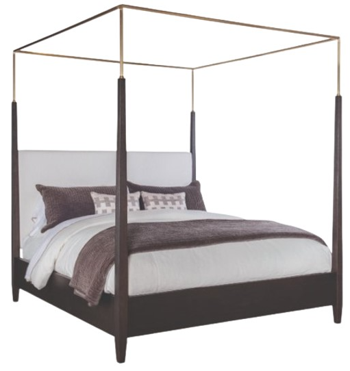 Crafted from oak solids and narrow heart oak veneer the Cadence Metal Canopy Poster Bed features a rounded, antique brass canopy that returns into tapered, square wood posts. A beautiful, upholstered headboard rests inside the posts while the side and foot rails feature oak solids and narrow heart oak veneer.Read More