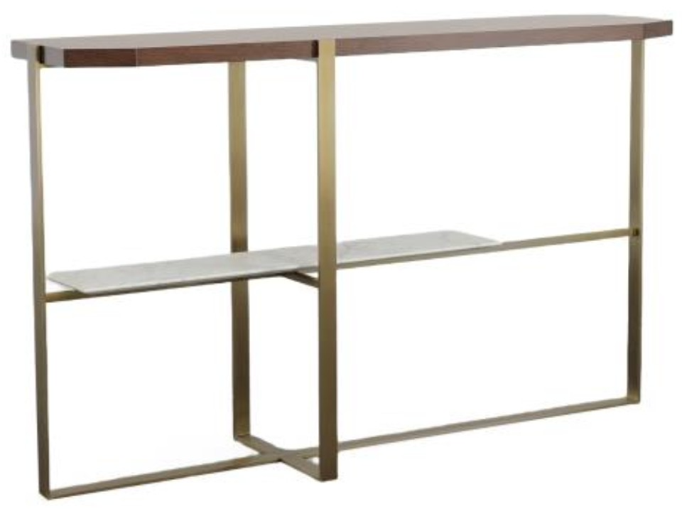 Finish: 491 Bridgeton wood top, satin brass metal frame with marble shelf