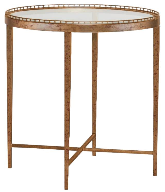 This exquisite table features a clear, round glass top that beautifully showcases its warm gold base, adding a touch of opulence to any room. Perfectly sized for placement beside a chair or sofa, this table combines functionality with sophisticated style.Read More