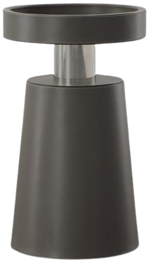 Introducing the perfect accent table for any living room design! This luxurious table offers a unique design in charcoal leather-wrapped with polished nickel collar and clear glass inset top. Constructed from sturdy materials, this table is sure to be ideal for entertainment spaces.Read More