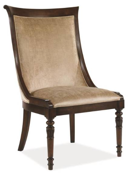 Bring this side chair to your dining design from the Wellington Court series. It has an upholstered seat, a full upholstered back, and it is made out of meranti solids and mahogany solids.Read More