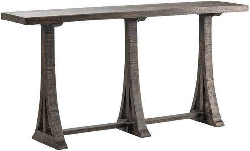 The Crestview Collection Alpine Console Table has a dark-brown finish that will bring a feeling of richness to your home. Three curved triangle legs support a flat table top surface. The transitional style of this wooden table will complement your home decor.Read More