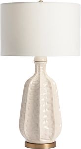 The Crestview Collection Carambola Table Lamp features a beautiful white ceramic body. Scalloped ridges and a wavy pattern add depth to this stunning lamp. A gold base and gold hardware contrast with the clean white design to give this transitional lamp a modern edge; a crisp, white shade allows the light to glow.Read More