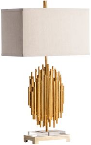 Include this table lamp in your living room or bedroom design, which has a metal base and body in a gold leaf finish. This table lamp will surely make a statement in your living room or bedroom design.Read More