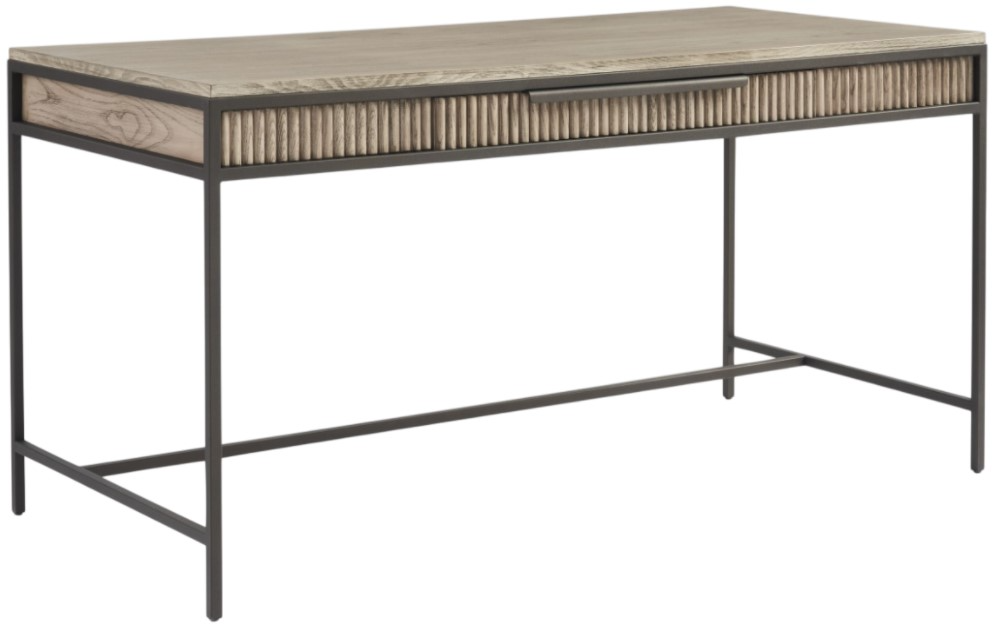 The Concord desk is designed with a reeded front drawer with metal frame and legs. A modern, masculine example of a traditional writing desk, this can serve as a floating desk or as a stylish accent piece.Read More