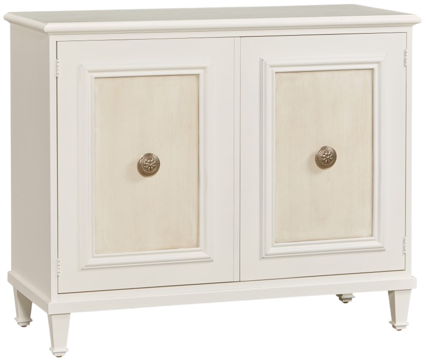 This two door cabinet addition to our best selling Naples collection of tables is constructed of maple solids and veneers. The door hardware is a heavy brass in a slightly aged finish and the inside chamber houses one drawer and one adjustable shelf.Read More