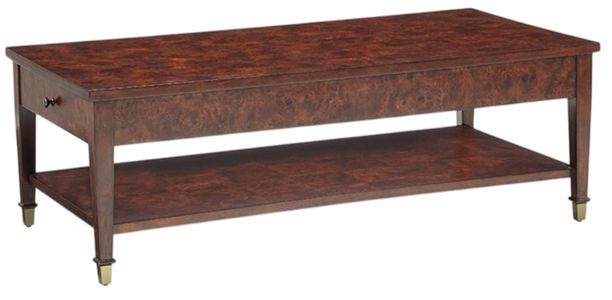 The beauty of this rectangular cocktail table is in the wood itself. The Mappa Burl veneers are on all surfaces and are enhanced by the clarity of the simple finish. Clean lines and straight-forward traditional styling are very timely in today's marketplace.Read More