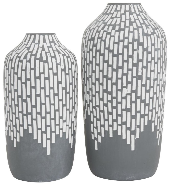 This gray colored stoneware vase comes as a set of 2