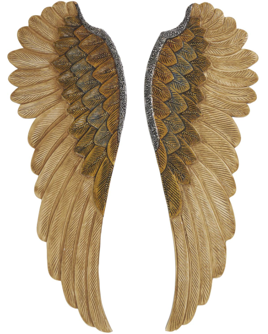 Satin gold wall art set for living room takes form as wing-shaped sculptures, intricately detailed with spiral and zigzag patterns to catch the eye