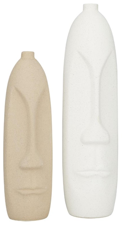 This beige colored stoneware vase comes as a set of 2