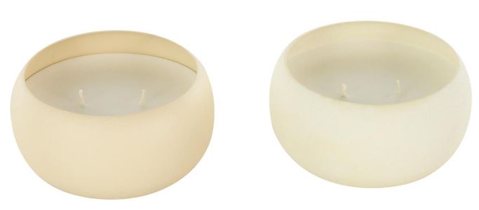 Perfect for living rooms or bedrooms, the beige set of 2 candles enhances any ambiance. Designed with felt or rubber stoppers at the base that prevent scratching furniture and table tops, as well as sliding around. Features 2 Fresh Cotton scented white paraffin and palm wax candles, each with 2 wicks and a 29 hr burning time. Fresh Cotton scented candle composed of citrus and floral notes with a musky, creamy vanilla base; White Tea & Ginger scented candle composed of a refreshing blend of citrus, ginger, and cedarwood. This item ships in 1 carton.