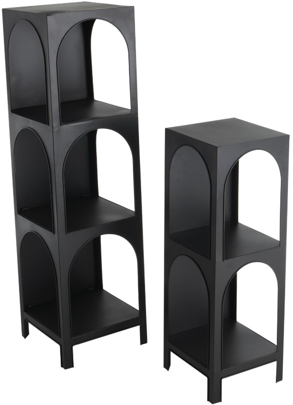 Inspired by sleek elegance and clean lines, a minimalistic design offers effortless luxury with monochromatic tones and bold, angular structures. Crafted entirely from iron, this black storage shelving unit set promises durability and longevity.Read More