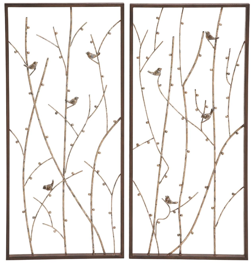 This teal home wall decor assortment is crafted from solid iron material, ensuring a durable design that will stand the test of time. Rectangle decor assortment for wall is characterized by its weathered black frames that encase brown branches and gray and brown birds, providing a rustic yet refined aesthetic. Iron assortment of 2 wall decors also features a lightweight open frame that is easy to hang, making it a practical addition to your interior decor.