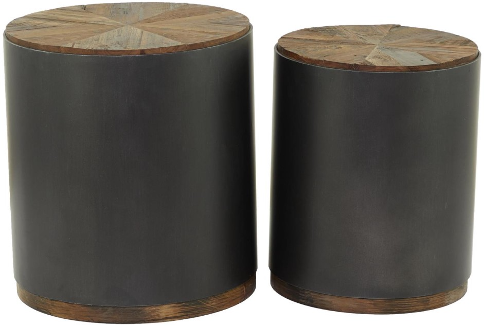 Each piece in this rustic set of 2 large tables is meticulously crafted with the metal material being welded into a round structure and then furnished with a brown wooden top and bottom