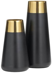 Embrace artistic expression with a style that highlights bold designs with sleek lines, neutral elements, and a minimalist aesthetic. The vases are made of stainless steel, giving them a durable and long-lasting quality. This contemporary cylinder stainless steel vase has a sleek black finish with gold rims for a modern and sophisticated look.Read More