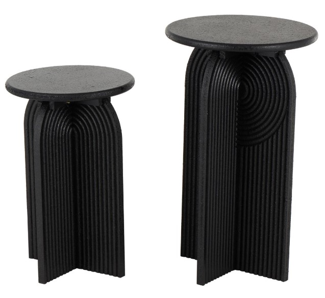 Inspired by sleek elegance and clean lines, a minimalistic design offers effortless luxury with monochromatic tones and bold, angular structures. Crafted from fir and MDF materials, this black side end accent table set offers superior durability and strength. Round table set boasts a rich black color, enhanced by a sandstone inspired finishRead More