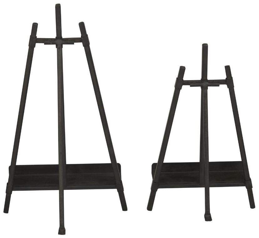 Give your surface space a finishing touch with these beautifully crafted easels. Durable and sturdy, this easel lets you display your favorite things with ease, and with out overshadowing your piece. Flaunt your paintings or any artwork on canvas with this black set of 2 tabletop easel to enhance your traditional indoor aesthetics. This item ships in 1 carton. Suitable for indoor use only. This item ships fully assembled in one piece.