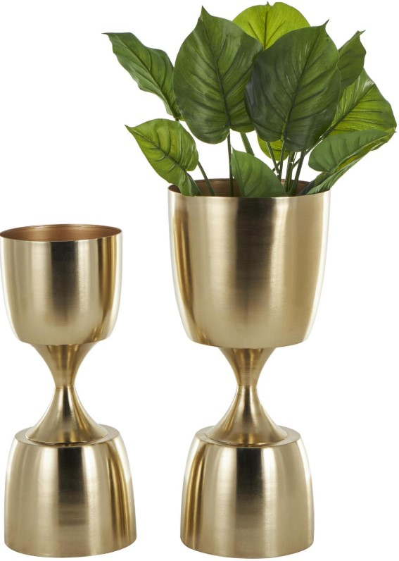 The hourglass shape of the shiny gold flower pots for outdoor plants provides a unique aesthetic appeal while maximizing space for your plants