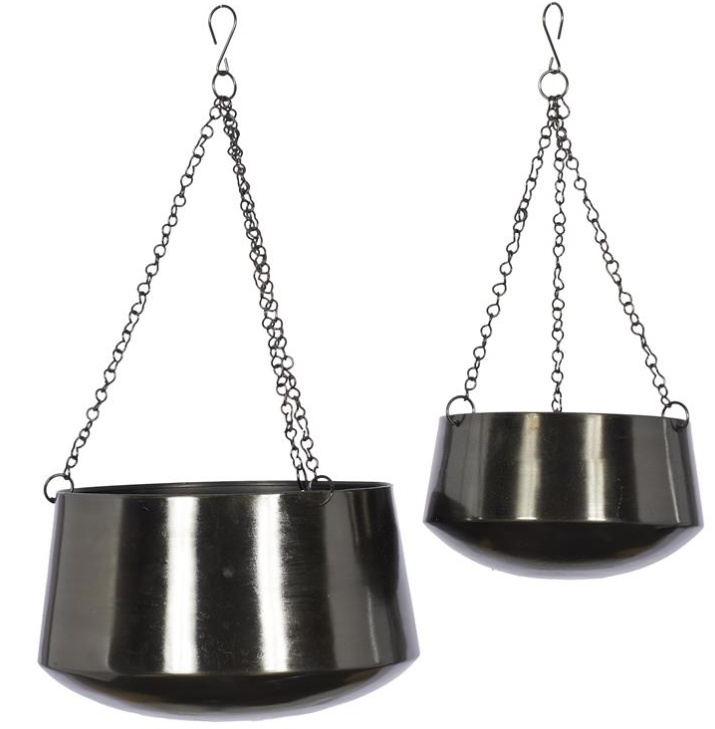 Ideal for gardens, offices or living rooms, the gold set of 2 hanging planters can add a bright touch to complement your contemporary space. This item ships in 1 carton. These metal planters are great additions to gardens, patios, and indoor spaces with a modern or glam style theme. Iron wall planter makes a great gift for any occasion