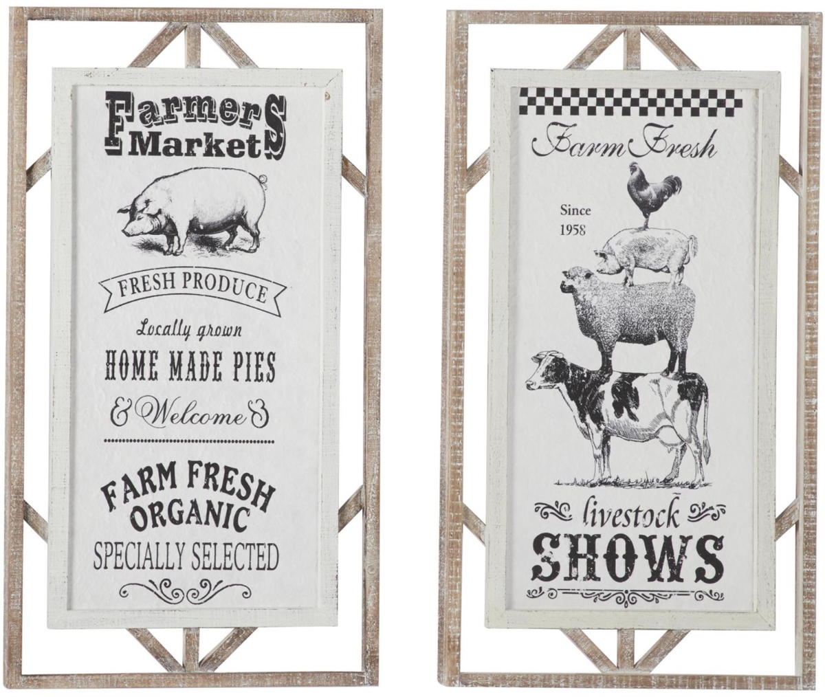 This wall decor features farm animal figures in a rectangular shaped frame