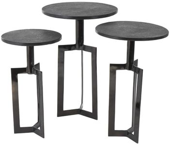 Precision shaping of aluminum is done to ensure a sleek and uniform matte black finish across all eclectic set of 3 small tables, resulting in a set that seamlessly blends durability with modern design