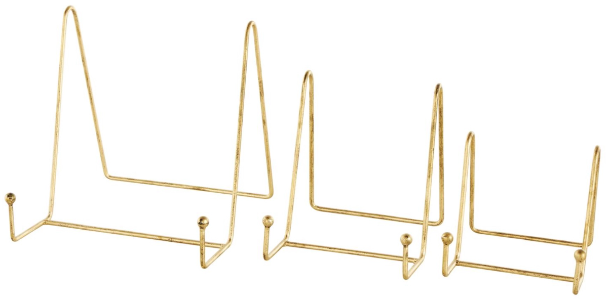 Place this gold set of 3 tabletop easel on your console table and arrange your favorite artworks, photos, or small decorative items on the triangular display platform.