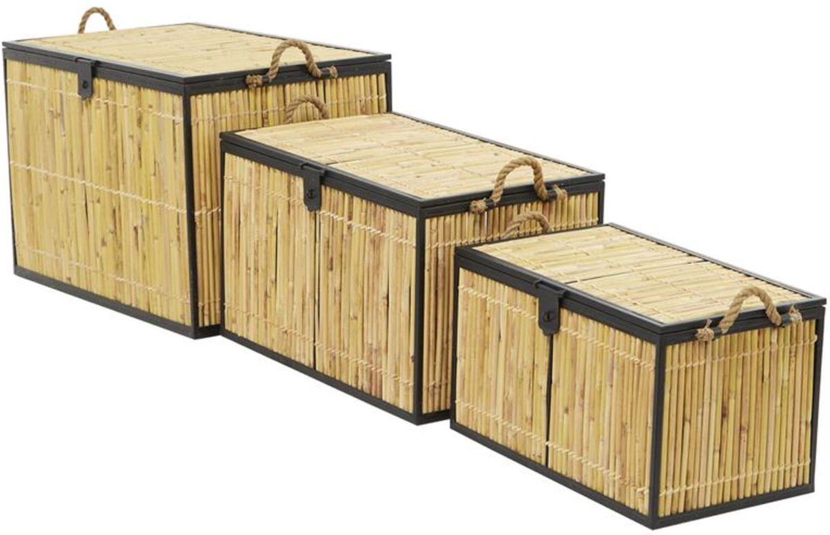 This light brown colored rattan storage trunk comes as a set of 3. Natural style.