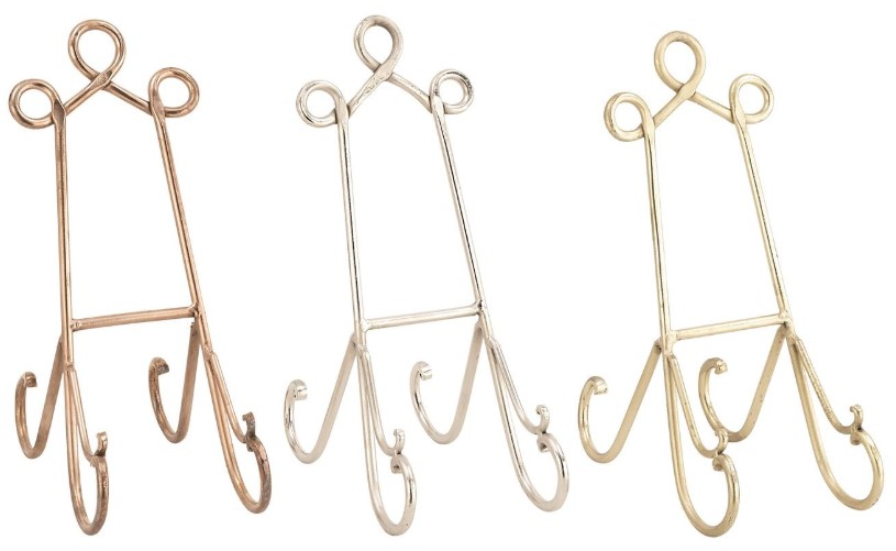 Designed with timeless sophistication, rich old-world textures and warm hues come together for a refined classic taste of luxury. This multicolored display easel assortment is crafted from iron ensuring durability and longevity. This triangle easel stand assortment comes in a copper, silver, and gold satin finish.Read More