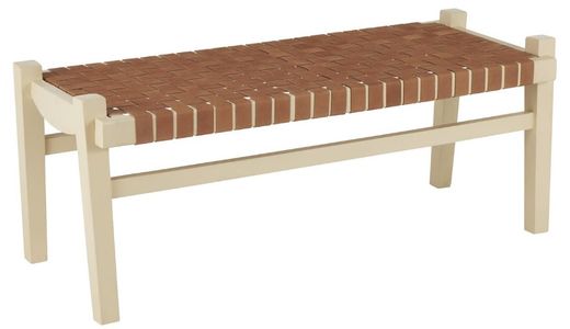 Embrace artistic expression with a style that highlights bold designs with sleek lines, neutral elements, and a minimalist aesthetic. Crafted from high-quality leather and acacia, this brown home bench offers durability and style. Rectangle entryway room bench features a matte beige finish that adds a touch of elegance to any space.Read More