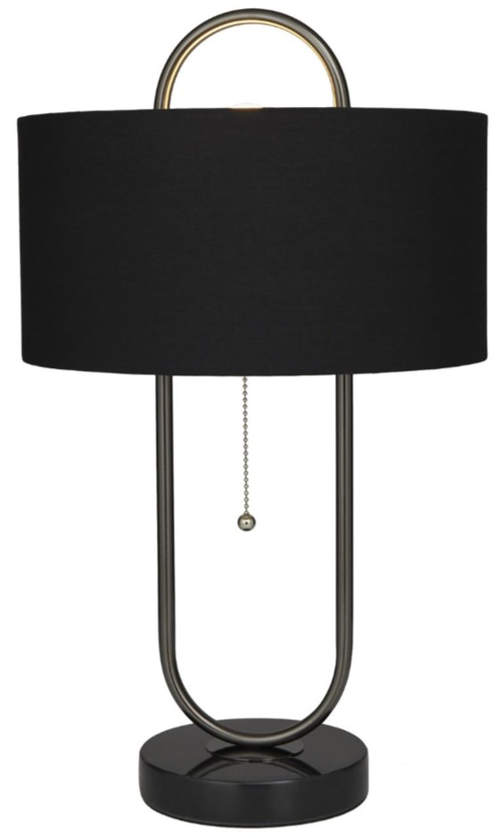 The oval accent lamp for living room showcases a polished black metal body, providing a sleek and modern finish. With its round shade and pull-type switch, this metal accent lamp offers a blend of practicality and contemporary design elements.