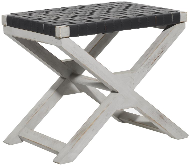 Designed with a farmhouse style for that homey feeling. Stool is made of a solid wood structure and leather weaving seat. Features rectangle-shaped seat stool with black seat and distressed white finish. This stool will create a vintage feel that is eye catching to elevate your existing decor.Read More
