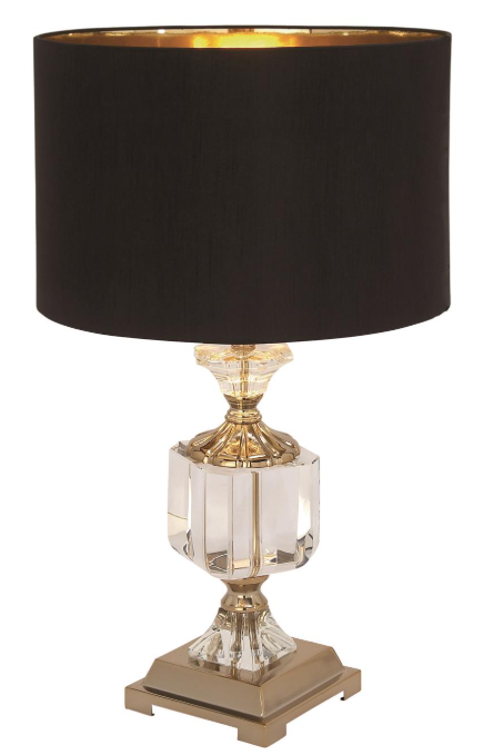 This crystal table lamp's most distinctive feature is its metallic gold shade interior that emits a warm ambient glow