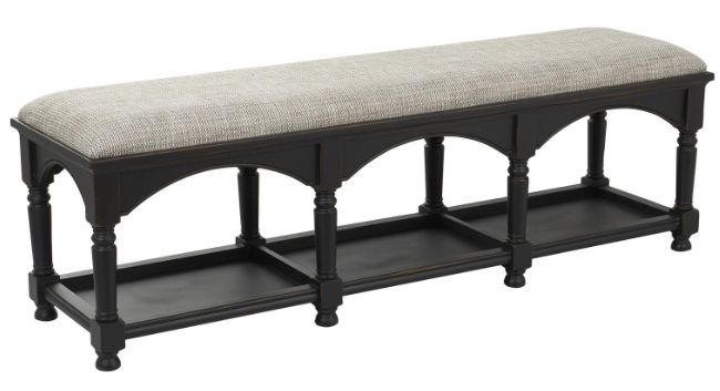 Designed with the essence of timeless sophistication, where rich old-world textures and warm hues come together for a refined classic taste of understated luxury. Entryway bench is crafted from foam and fabric with wood and MDF legs for added stability and support .Read More