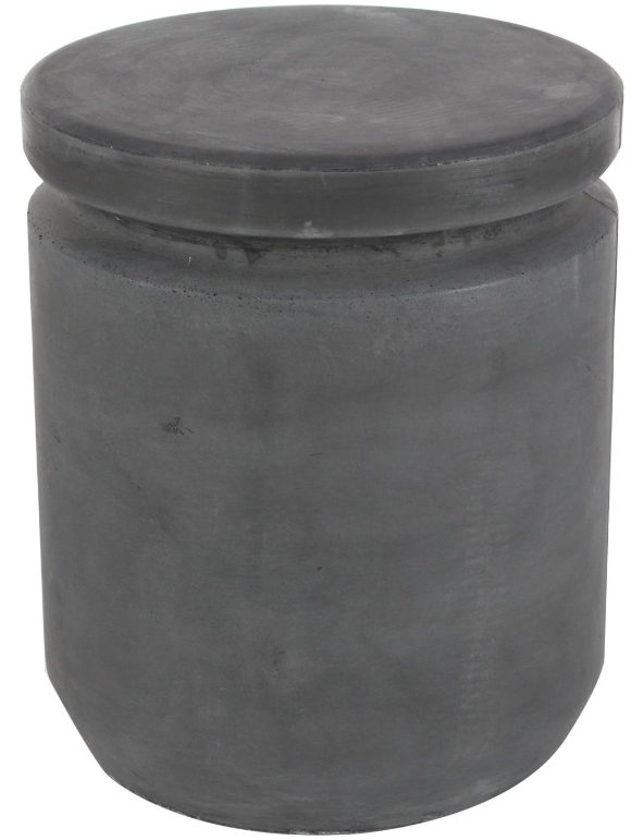 This foot stool features a solid feel thanks to its cylindrical profile and clay materials