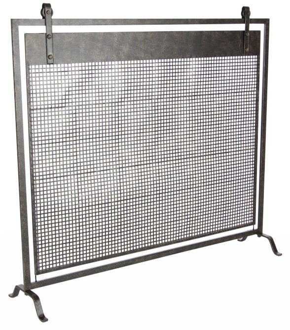 This iron fireplace screen includes a frame with a stand and an attached square metal panel that serves as a mesh, effectively blocking hot coals. Keep those straw ambers at bay with this fire place screen. Adding style even when the fire isn't lit, this fireplace screen adds style as well as function. Place this geometric fire spark guard as both a protective cover and an ornamental piece in your living room's empty spaces. This contemporary fireplace screen protector is constructed with a welded metal frame, top brackets, and an attached stand for sturdy support.