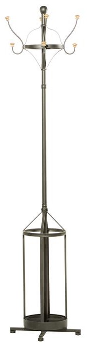 This coat rack comes in a black finish, making it easy to match with any home decor or indoor planter, Featuring a finial and curved metal hangers with wooden tips, this rack can support your coats, small bags, caps, and umbrellas.