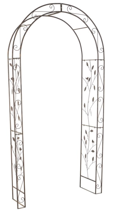 The scroll garden arbor is a perfect addition to your garden or patio space, surrounded by planters, floral, and a bench. This item ships in 1 carton. Suitable for indoor use only. This item ships fully assembled in one piece. This is a single bronze colored garden arch.