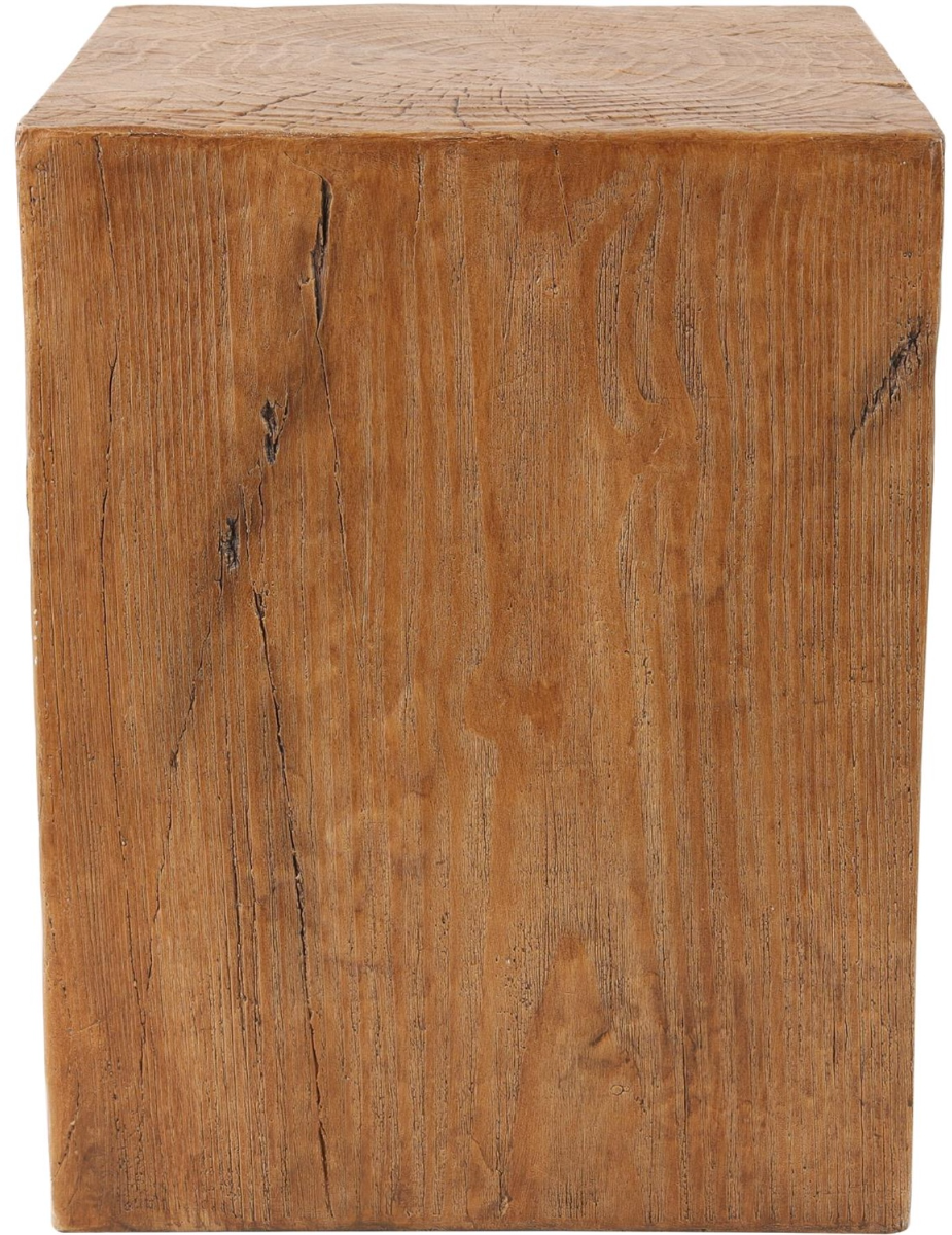 The rectangular block shape and textured natural wood patterns of this small outdoor table adds visual interest and charm to any outdoor space