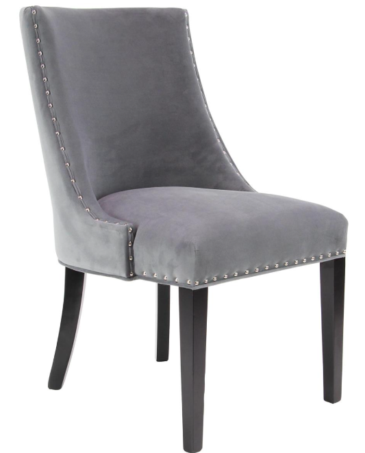 A classic and timeless style and design for your traditional home setting. Traditional upholstered accent chair made of wood structure and polyester fabric. High back accent chair carries grey upholstery with black legs and silver nail heads. Upholstered side chair features soft polyester fabric with high backrest and nail head accent along the side and a plush seat cushion.