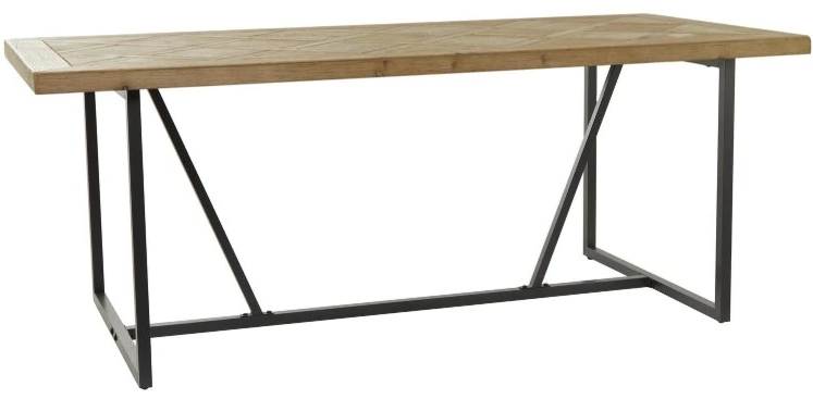 The table top is crafted with MDF and fir wood and secured with an iron trestle leg stand