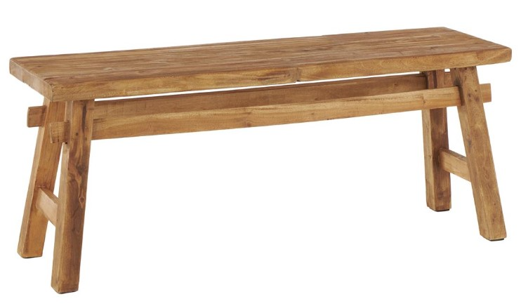Varnished brown entry bench boasts rectangular shape with A shaped legs