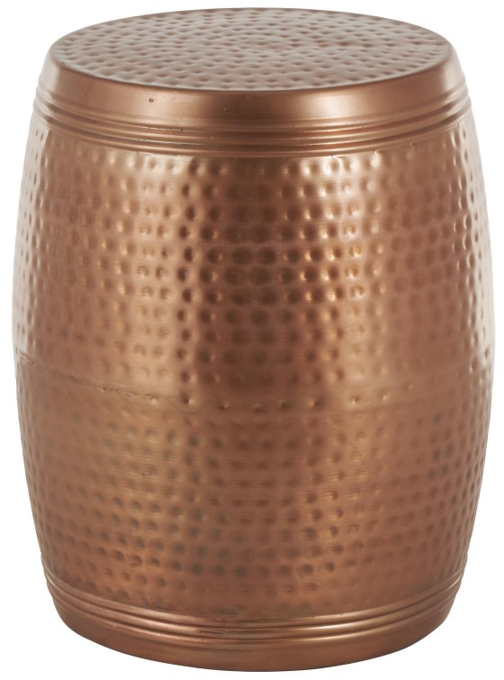 Bring a finishing touch to your home with an inviting appeal with this beautifully crafted accent table. A compact friendly table providing you with additional surface storage space any where in your home. To complement its classic style, pair this copper end table with a light brown sofa or other antique metal pieces. This item ships in 1 carton.