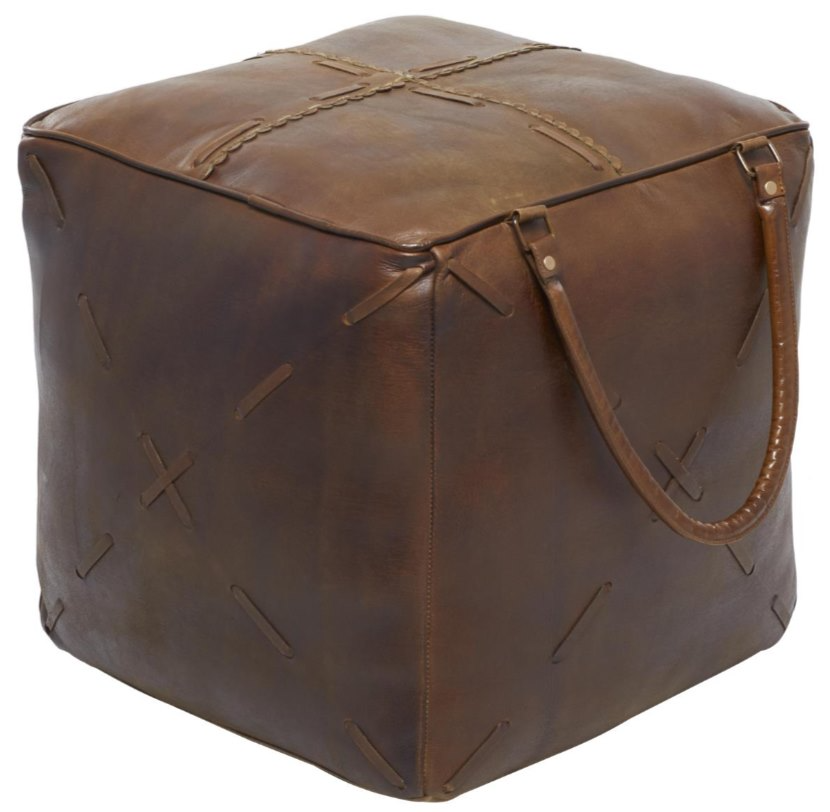 Designed with rugged beauty and an earthy charm, where natural simplicity, warmth, and organic materials create a wholesome atmosphere. This brown leather pouf is crafted of long lasting leather and metal materials This square leather pouf features a brown finish that complements other decors with same color shadeRead More