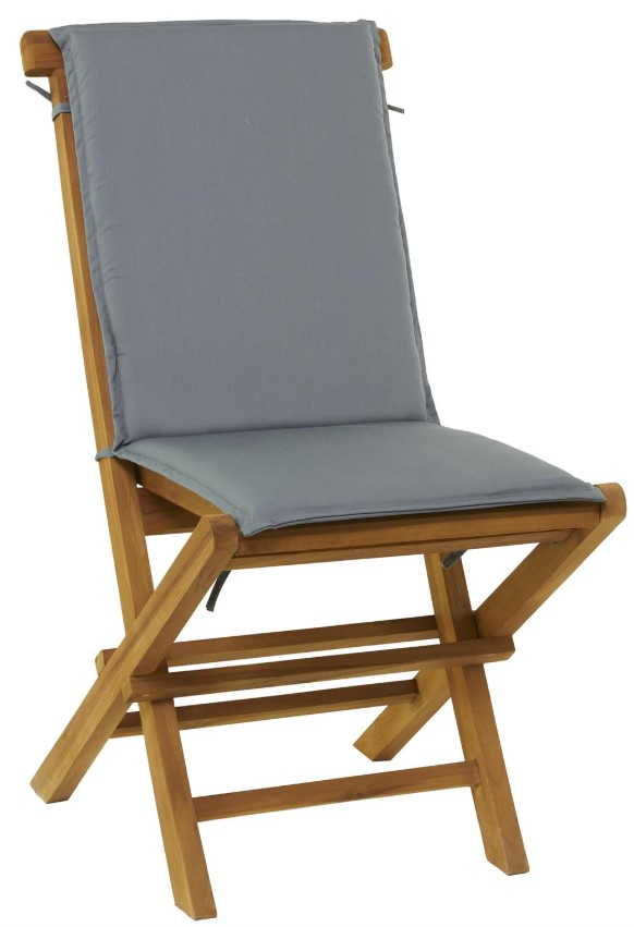 Traditional brown teak wood dining chair feature a folding style structure for easy storage, and removable plush cushions for all-day comfort. Sturdy outdoor dining chair is perfect for creating a focal point in your home for a comfortable seating arrangement. Create a welcoming and comfortable seating area in your outdoor or indoor space. Enjoy a comfortable seat at the table with these cushioned teak wood chair that complement other teak or concrete furniture, for a sophisticated appeal to your outdoor space.