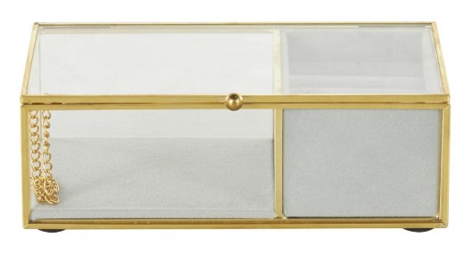 Indulge in the glamorous luxury of plush textures, dazzling details, and sleek finishes to elevate your home and add a sophisticated flair. This clear decorative jewelry box is crafted from high-quality glass, robust metal, and fabric, designed to stand the test of time.Read More
