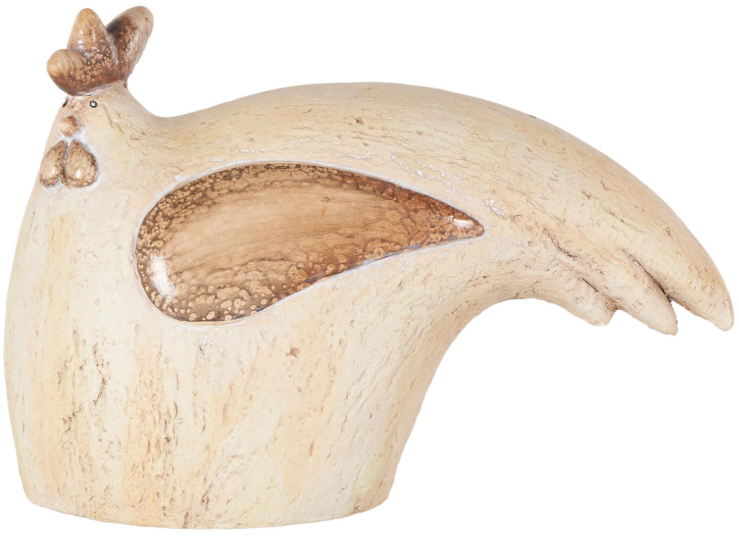 The textured cream outdoor decorative sculpture captures the graceful shape of a sitting rooster, adding a touch of sophistication to any garden
